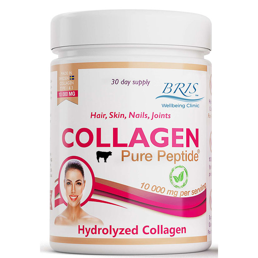 Swedish Nutra Collagen Pure Peptide Powder 10,000mg (per serving) with hydrolyzed collagen, vitamin C, B5 and B6